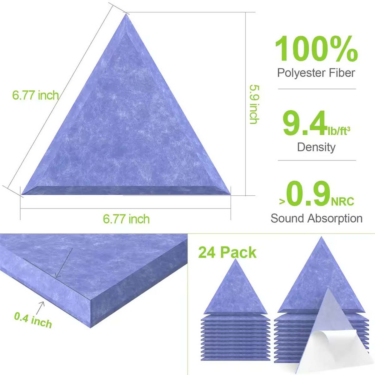 Bilnora isolanti acustici triangolo in feltro extra denso 50x50x0,9cm