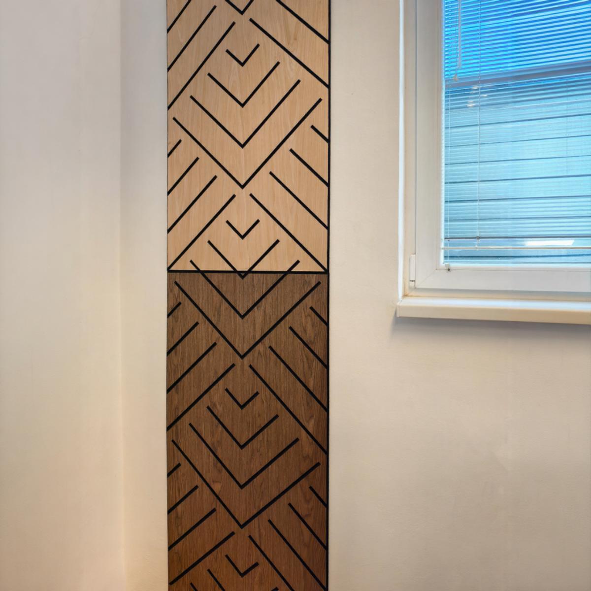 Il pannello acustico Freja con motivo V combina design raffinato e alta efficienza fonoassorbente, ideale per chi desidera migliorare l’estetica e il comfort acustico dello spazio.